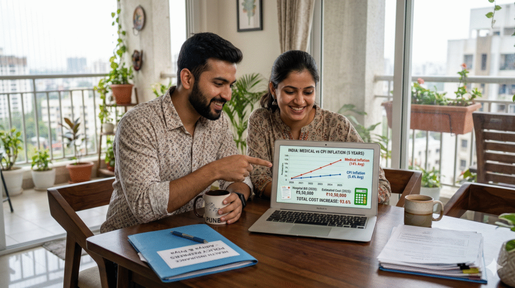 14% medical inflation versus 5.4% CPI isn’t just numbers on a chart—it’s the difference between a manageable hospital bill and a family financial crisis. Your ₹5 lakh policy from a few years back is losing power fast, but you have the tools to fight back. Calculate your true need, layer smart top-ups, review annually, and treat protection as seriously as you treat your career or home loan.