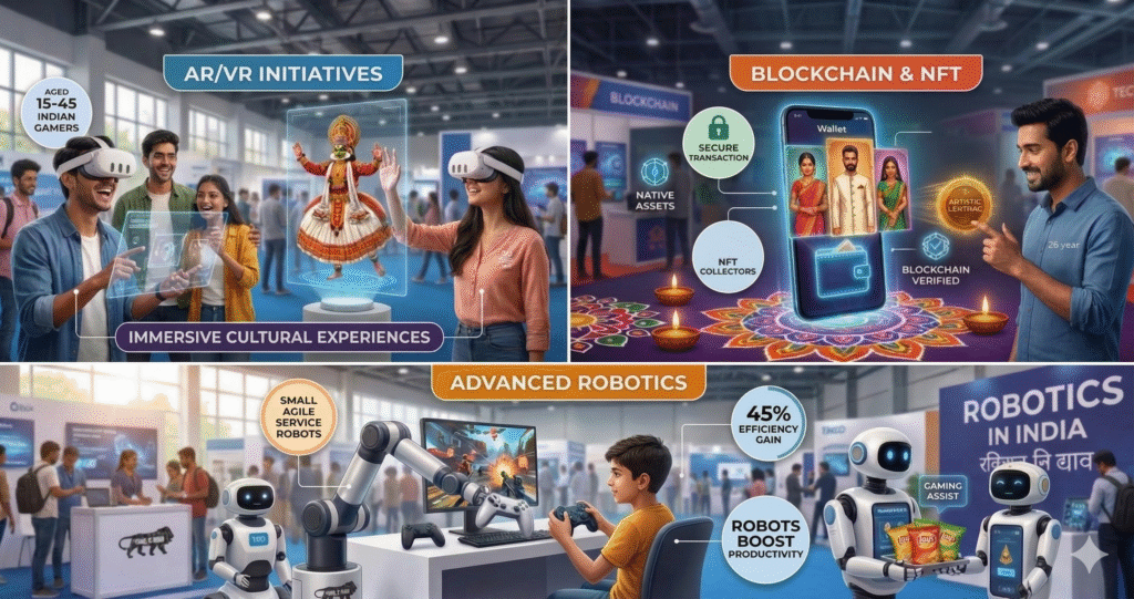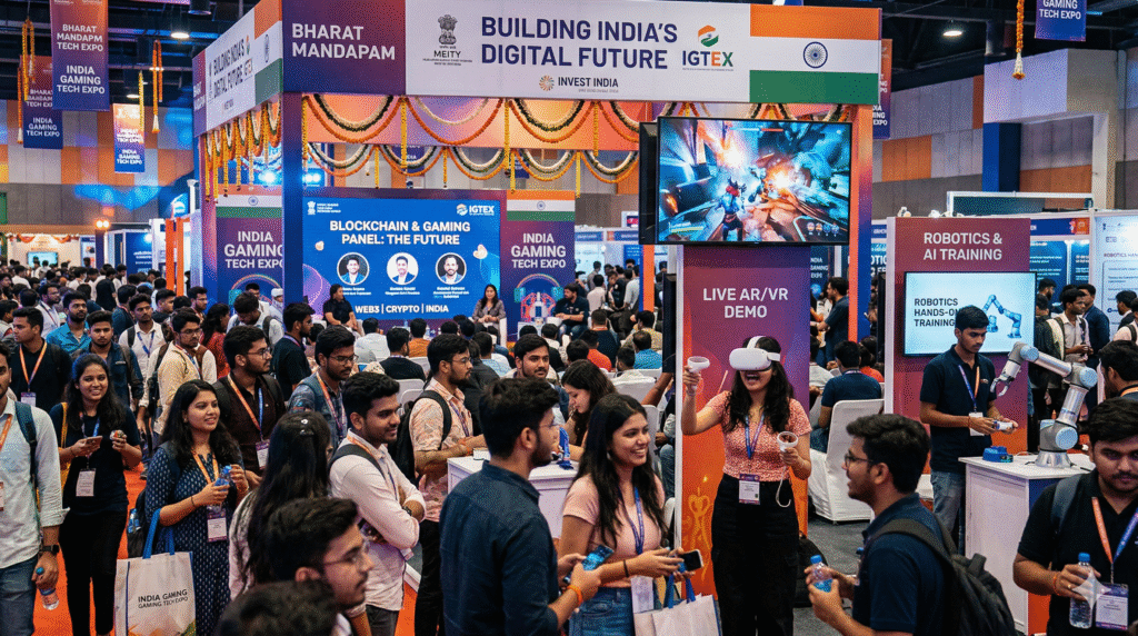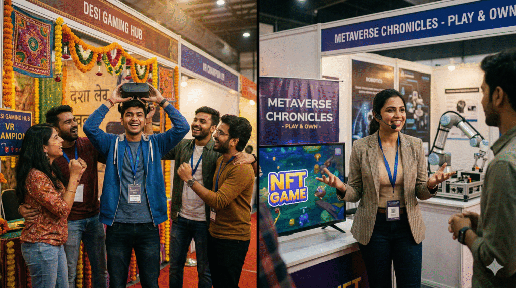 Think of the expo like a massive mela for the digital age—vibrant stalls, live demos, panel discussions, and networking zones buzzing from morning till evening. Over 20,000 visitors (including students, professionals, and enthusiasts aged 15-45) explored how emerging tech isn’t copying Western models but remixing them with Indian flavors. It wasn’t about flashy consoles; it was about accessible, mobile-first innovation that reaches Tier-2 and Tier-3 cities. The energy was electric—crowds huddled around AR mirrors turning selfies into avatars, blockchain wallets lighting up with instant rewards, and robotic arms simulating perfect esports training drills.