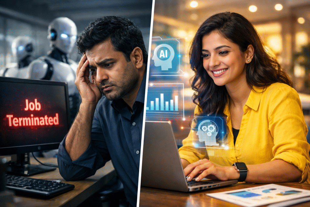 So, what’s the real story? Is AI a job-killer lurking in the shadows, ready to swipe your livelihood, or a powerful ally that could propel your career to new heights? In India’s bustling job market, where millions chase stability amid economic shifts, this question keeps professionals up at night. This blog cuts through the hype to deliver a no-nonsense survival guide for 2026. We’ll spotlight jobs at high and low risk, unpack the “human” skills that AI can’t touch—like creativity, empathy, and complex problem-solving—and even include a self-assessment quiz to gauge your vulnerability. Rooted in real data and stories from Indian pros, this isn’t fear-mongering; it’s your actionable roadmap to thrive. Let’s unpack it step by step.