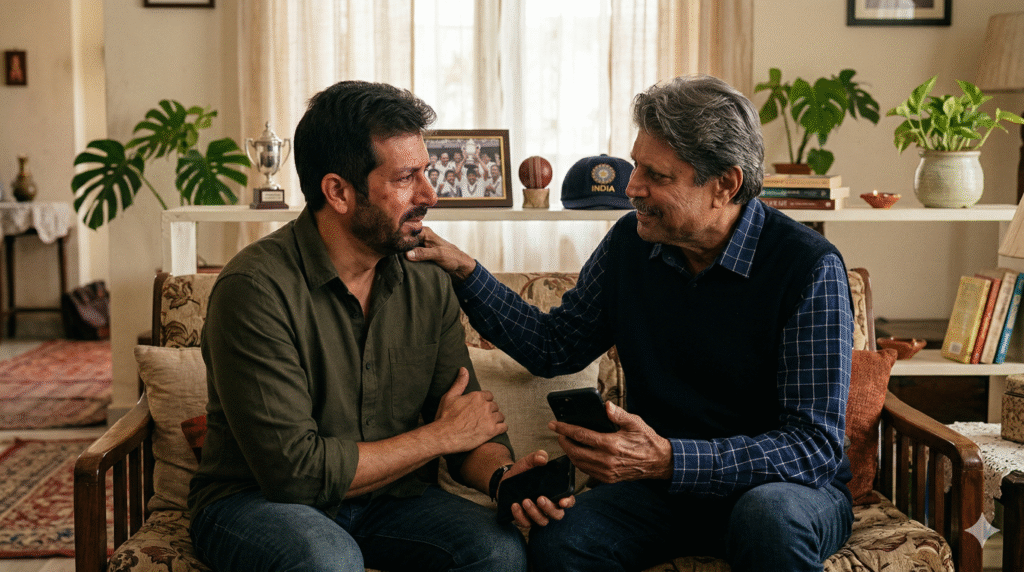 Now, picture another scene months later. Kapil Dev himself picks up the phone. The captain who once lifted India from underdogs to World Cup legends doesn’t offer sympathy or empty promises. Instead, with that trademark warmth and wisdom, he says something that changes everything: “When we won the World Cup, we didn’t get money. We got respect. Forget about the money. This film is your World Cup. Focus on the love you’re already receiving.” Kabir’s eyes well up. Suddenly, the weight lifts. The film may not mint crores overnight, but its legacy? That’s priceless.