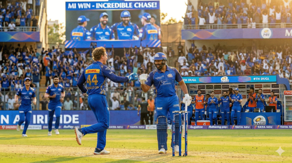 What made the evening unforgettable? Wankhede’s roar, blue jerseys everywhere, street-side dhabas replaying highlights. Pair it with vada pav and filter coffee for the perfect desi watch party. Young fans recreated Rohit’s shots in gully cricket the next day. This knock wasn’t just MI’s; it united Indian cricket lovers across cities.