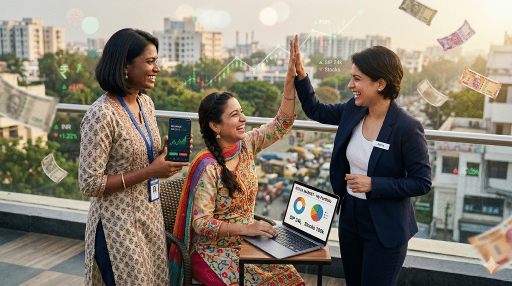 The stock market no longer feels like a boys’ club. It’s your arena too. Start today—open that demat account, set up your first SIP, and watch your wealth (and self-belief) grow. What’s stopping you? Share your investing journey or first step in the comments below. Let’s celebrate every win, big or small, and lift each other up. Your financial freedom story starts now.