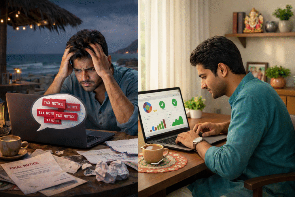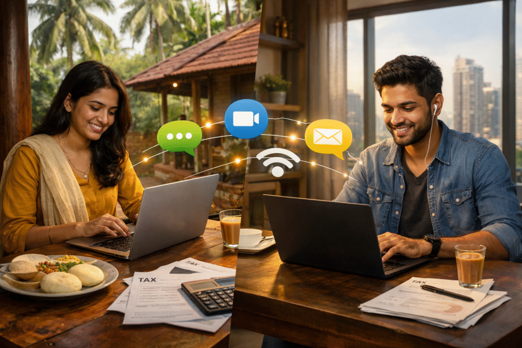 Remote work isn’t new to us Indians—we’ve always adapted with “work from village during festivals” or family business calls. Karva Chauth, Diwali, or summer breaks in the hills—our culture is steeped in flexibility. But those moves often end with hasty tax filings or ignored GST notices, sending compliance into a wild ride. For professionals with PCOS-level stress from deadlines? That’s a tricky combo.