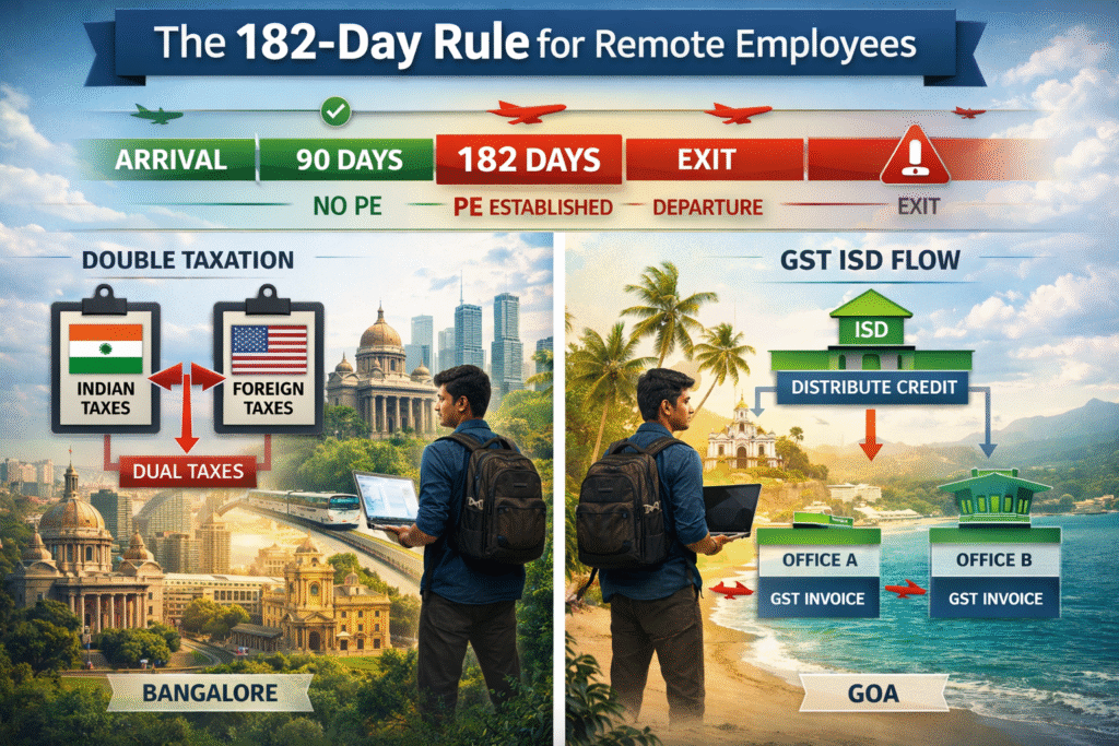 • Permanent Establishment (PE) Risks: For employers, remote workers in new states or countries might create a “fixed establishment” under GST or PE under income tax, leading to corporate tax filings, audits, and penalties. 2026 rules are tightening on digital/remote models.