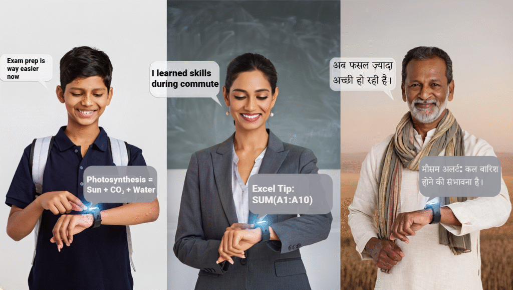 Take Vikram, a 42-year-old farmer from Punjab: His smartwatch delivers crop management tips via voice in Punjabi during fieldwork. “Yields up 15%—it’s like a virtual kisan advisor,” he shares. Ambient learning fosters lifelong habits, turning passive consumers into active learners.